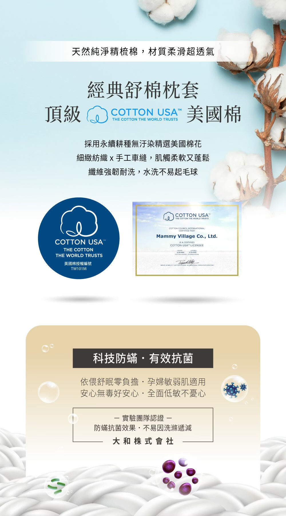 材質 ➤ 枕套:棉100%、內容物:台灣製A級棉花 100% (實際成份請以出貨商品外包裝標示為主。)