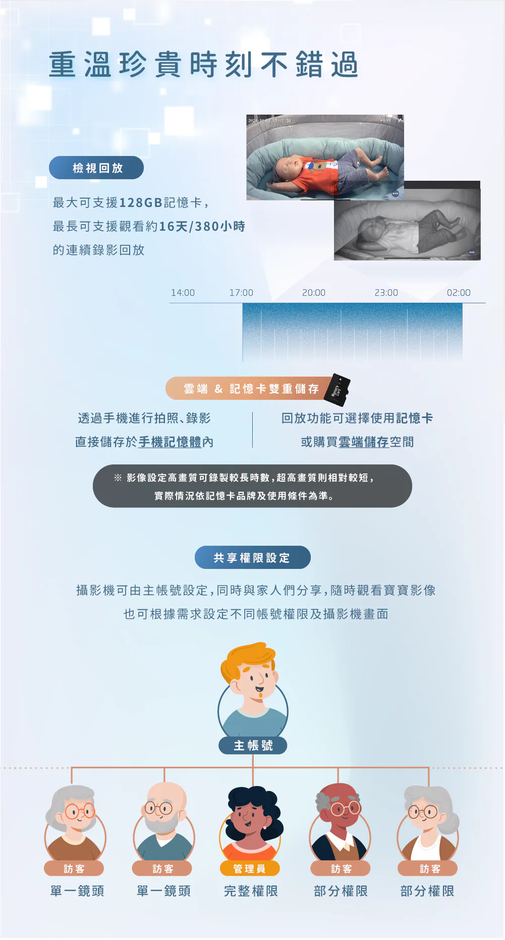支援 380 小時回放:安心記錄每個育兒瞬間 |
