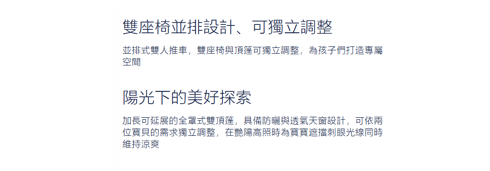 雙座椅並排設計,新生兒即可使用 |