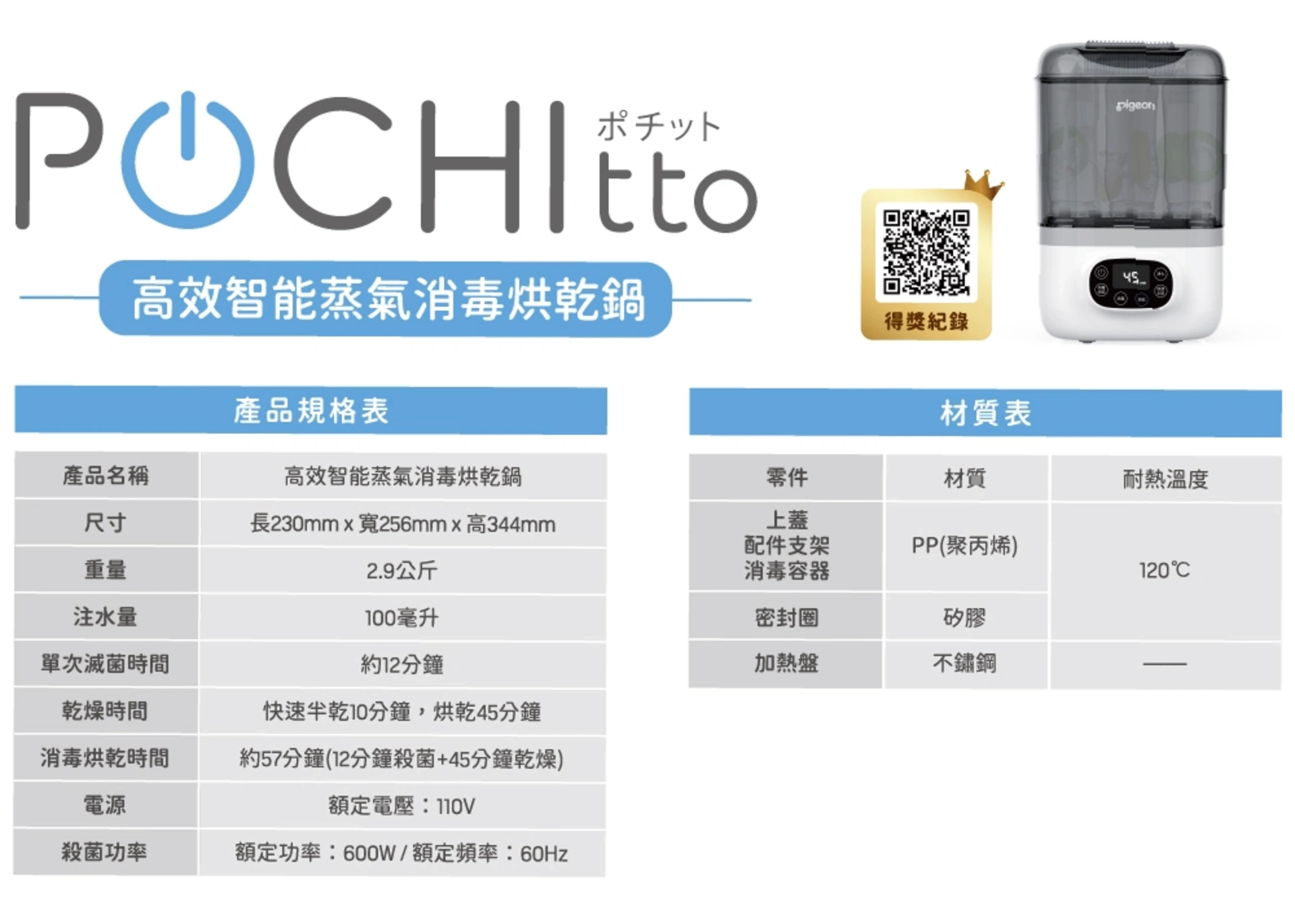 材 質 ➤ 上蓋、配件支架、消毒容器:PP(聚丙烯)、耐熱温度120%
