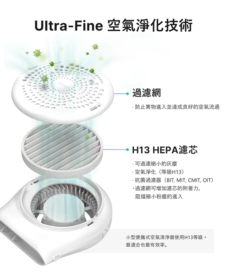 ⭐採用HEPA13濾芯,空氣清淨機等級過濾效能