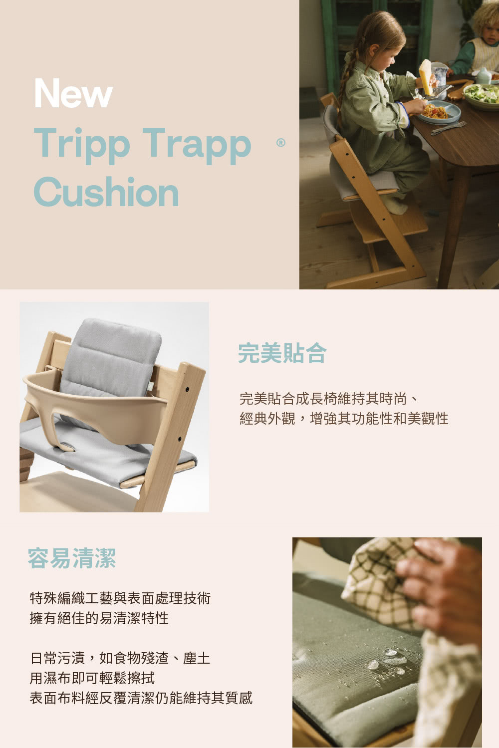 完美配合成長椅,提供舒適體驗並具有防滑功能 |