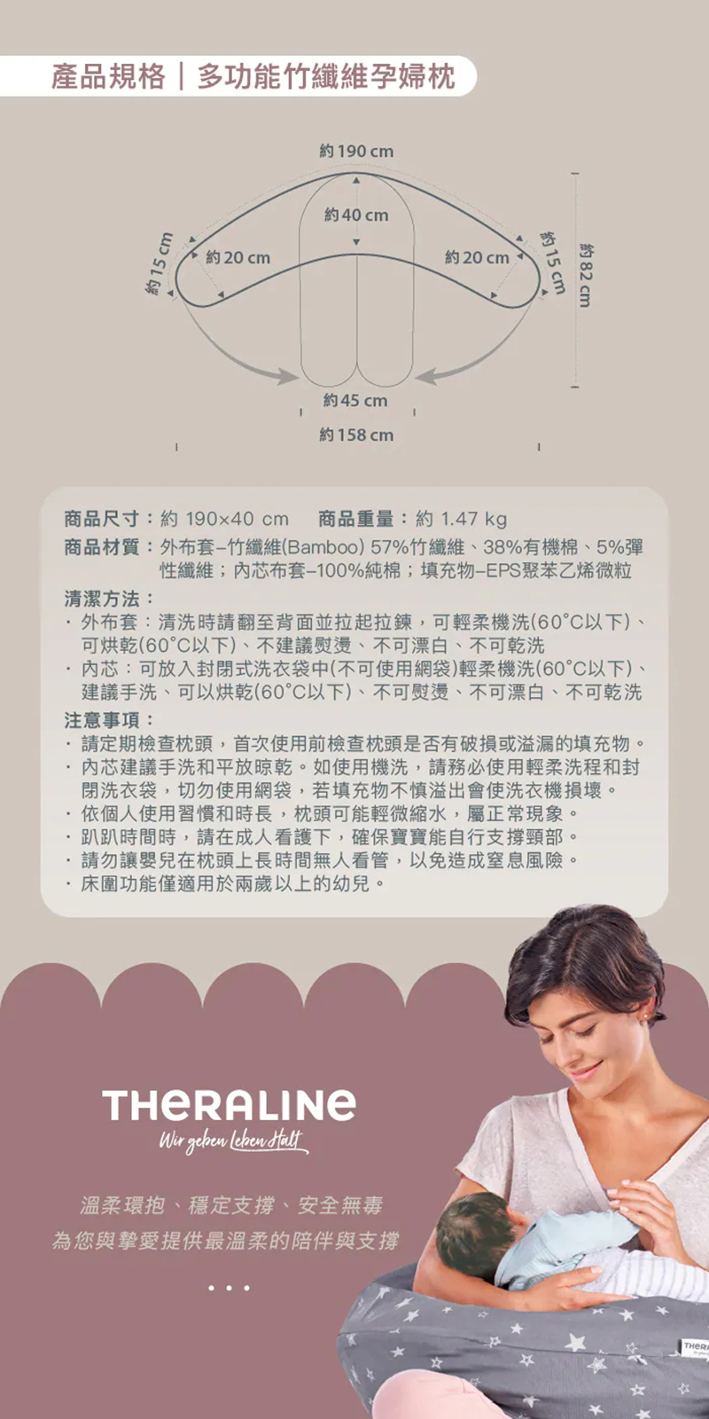 ▲Theraline 多功能竹纖維孕婦枕