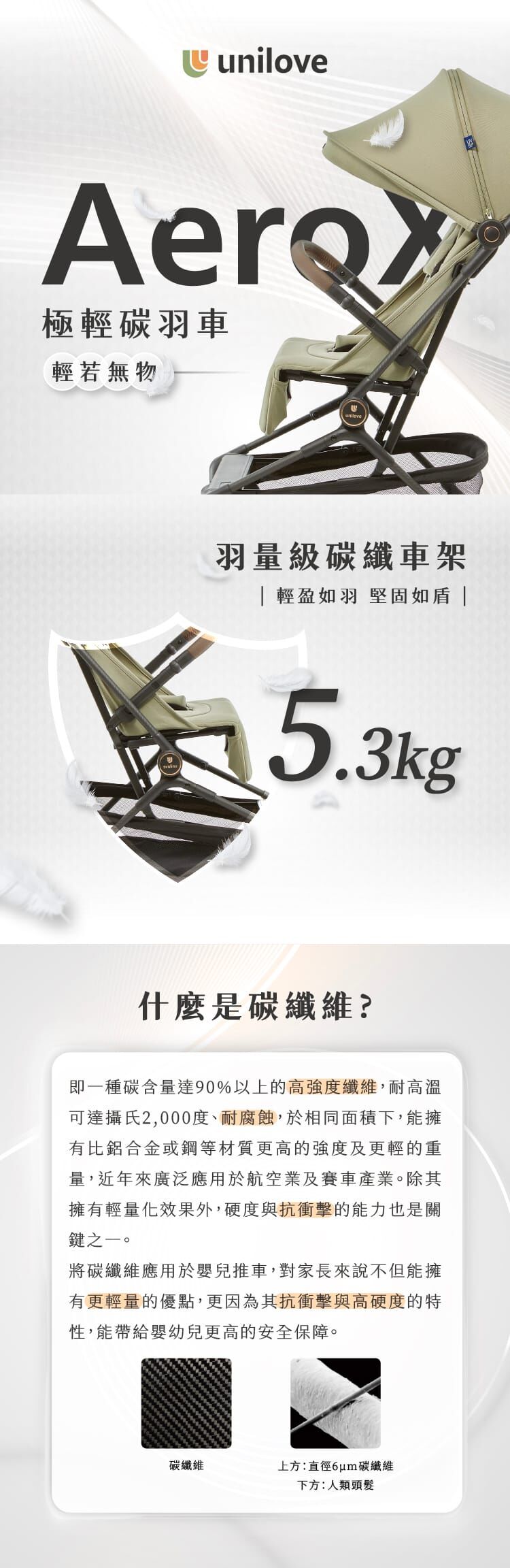 《 unilove AeroX 極輕碳羽車|碳纖維極輕量推車 》