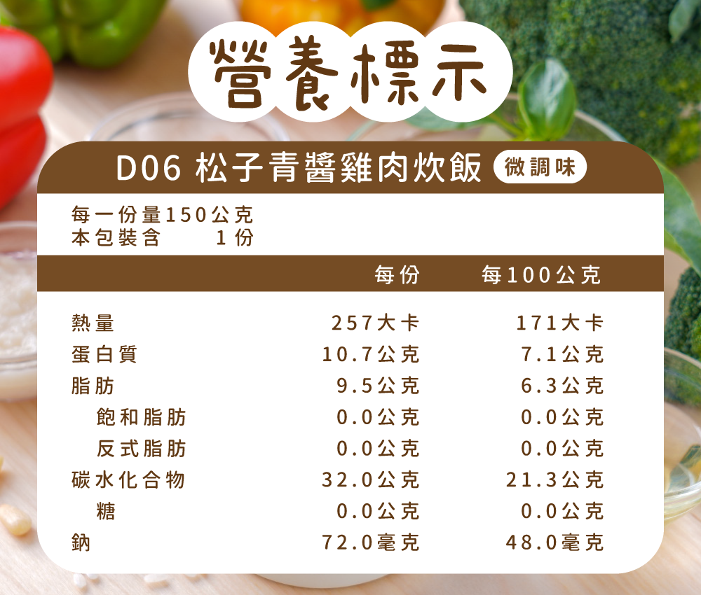 營養標示清楚透明,吃得安心 採用季節蔬果及天然食材,口味豐富滿足多元嘗試 |