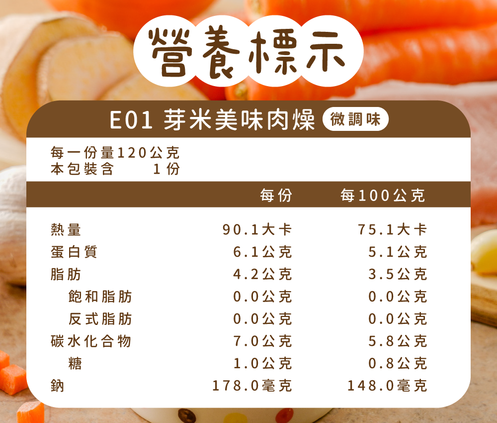 營養標示清楚透明,吃得安心 採用季節蔬果及天然食材,口味豐富滿足多元嘗試 |