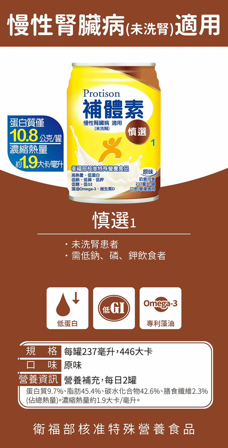 蛋白質僅10.8公克/罐,適合需謹慎攝取蛋白質者